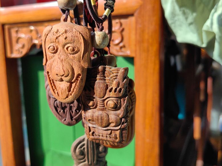 傩面具制作,每一步都饱含匠心。选香樟木为材,因其体轻且不易开裂;画大概轮廓,勾勒雏形;打粗胚、修冠,塑造神韵;挖空试戴,确保舒适;以环保水性颜料,一点一滴上色;最后穿绳,一件承载文化与匠心的傩面具就此诞生。