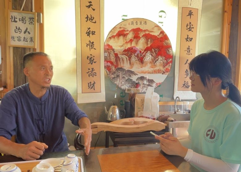 对于渴望学习的年轻人,洪师傅愿毫无保留地传授技艺。但洪师傅强调,学习需静得下心,雕刻傩面时要将手机放在一旁,专注手中的作品。更重要的是要先读懂傩面背后的故事,领悟其文化内涵,才能让手中的刻刀赋予傩面真正的灵魂。在采访过程中,洪师傅给队员们讲述了“八十大王”背后的故事,队员们仿佛看到了“八十大王”扶苏跨越千年时光翩然而至。