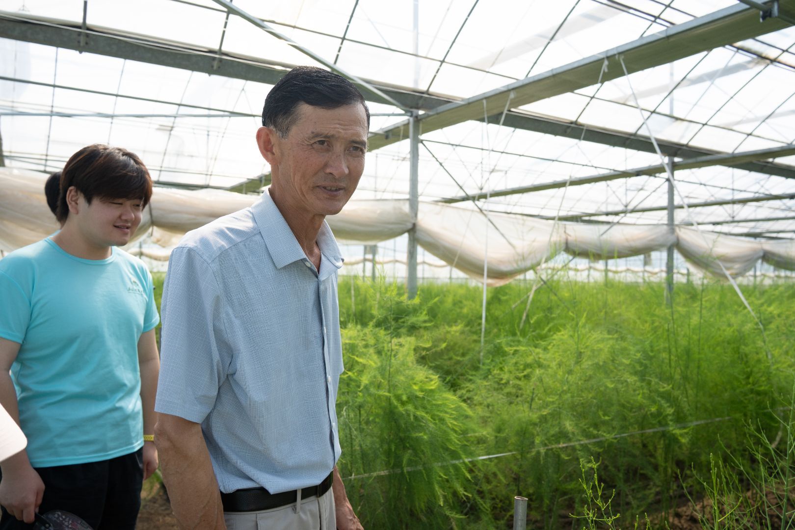 在田里考察的时候,实践团发现芦笋收完以后,地里留下了好多没什么价值的茎叶。企业的负责人说,养殖户反映,在饲料里加一些芦笋茎叶喂哺乳期的母羊,母羊的产奶量能多差不多15%,对母羊产后恢复也特别有帮助。现在,种植基地正在和附近的养殖企业谈合作,打算分三步把这些废弃的芦笋茎叶变废为宝。