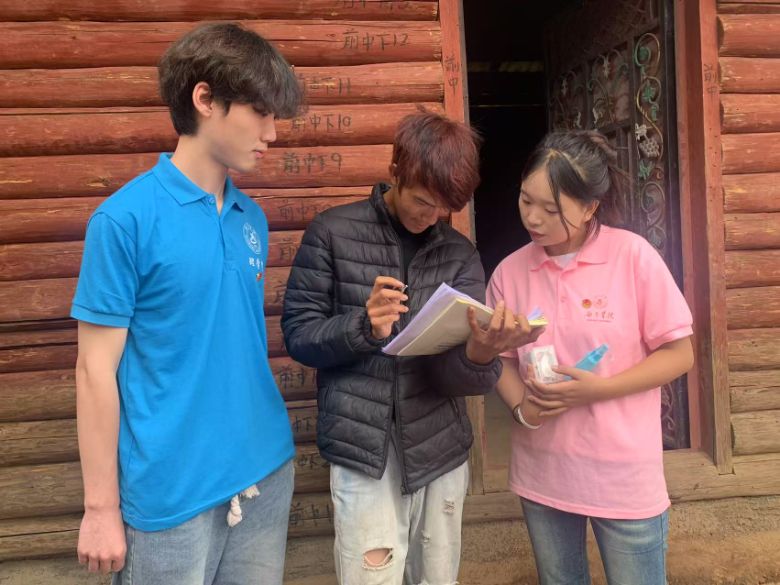 青艾先锋暑期社会实践队在木垮村里走访,队员们身着统一队服,用汉、彝、摩梭三种语言,耐心地向村民讲解禁毒防艾知识。他们向村民介绍毒品的种类和艾滋病的危害,让村民们更加了解毒品和艾滋病的知识。
