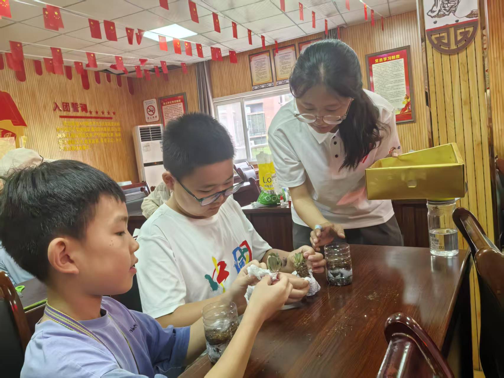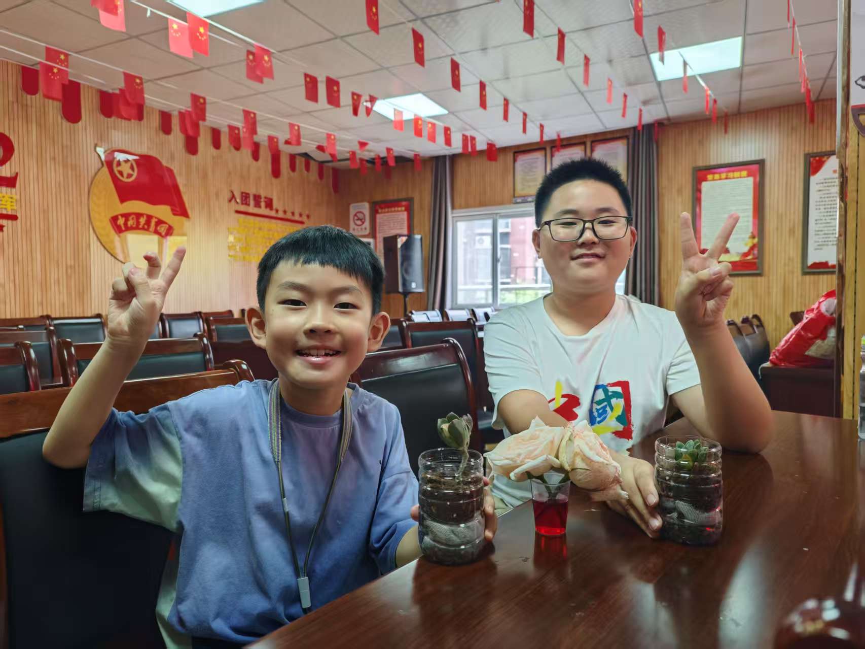 在社区活动中心,队员们带领小朋友们动手制作生态瓶,将土壤、绿植、小石子等材料巧妙组合,打造出一个个微型生态系统。