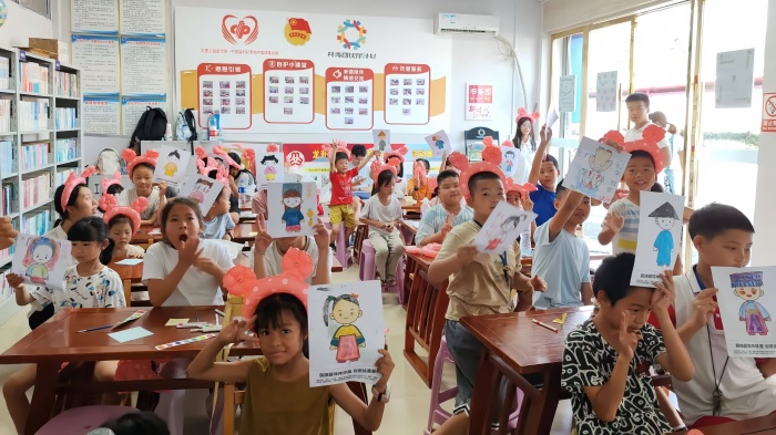 志愿者和小朋友们合影留念(周雅琴 摄)