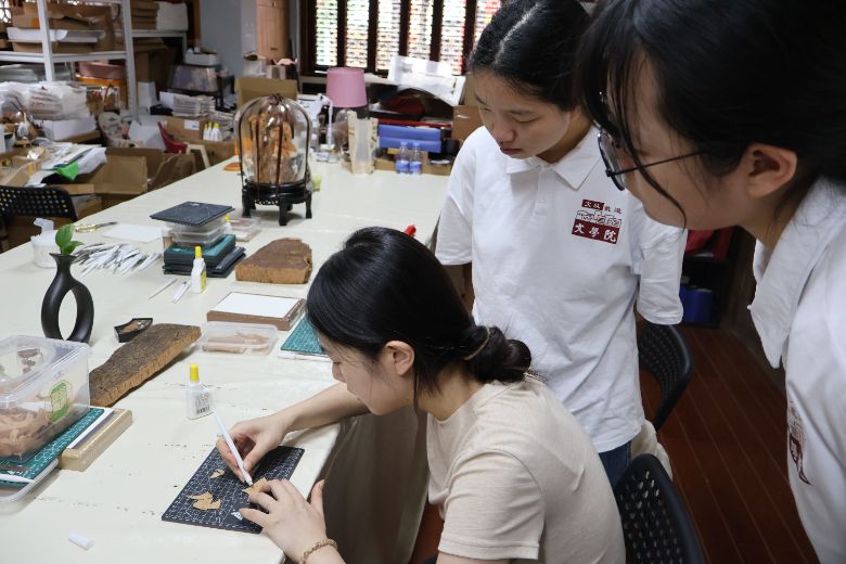 为深入挖掘福州特色非遗软木画的传统魅力与当代价值,福建师大文学院“方寸万象”实践队于7月前往福州西园村等地,开展福州特色非遗——软木画调研宣传活动。队员们通过观察学习和亲手体验等方式,感受软木画的非遗魅力,并前往对湖街道的5个社区进行宣讲,在优秀党员黄以孟老师的指导下完成黑板报,开展线下线上宣传。