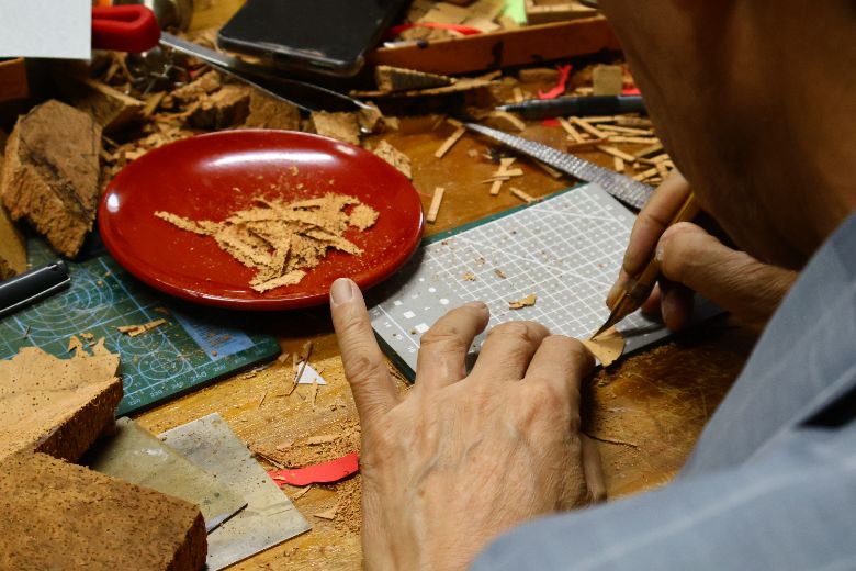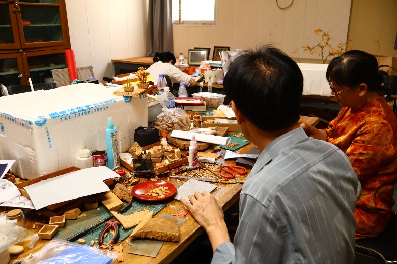 经过一代又一代人的努力,深植于西园村的软木画逐渐走出西园村,向外传承发展。7月4日,“方寸万象”实践队来到三坊七巷的软木画馆,该馆由国家一级技师、软木画第五代传人郭丽老师主理。馆里的软木画非遗传人介绍了软木画的特点和工笔技法,手把手教我们制作软木画。老师告诉我们,软木画握刻刀的方式和用毛笔写字一样,刀法以弧形为主,由多个弧形构成完整的花草树木,刀就像画笔一样,灵活多变。最终,实践队成员各自完成了一幅小型软木画,得到老师的鼓励与赞美。