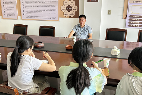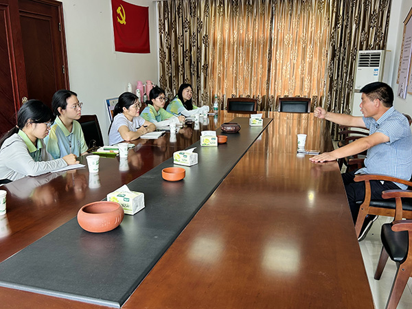 当天上午,实践团来到山娃子农产品有限公司,在会议室内与黄总围绕香榧产业链延伸展开座谈。黄总介绍,公司香榧种植面积约60亩,集中分布于会稽山一脉,依托区域内千年古香榧树资源,年产量达1000万斤,年产值约700万元。“我们的香榧来自自然生长的古香榧树,作为原产地,品质是有优势的,但产业发展确实不容易。”黄总坦言。谈及种植与加工,黄总表示种植环节依赖古香榧树自然生长,无特殊技术要求,加工中后期炒制是关键,同时开壳技术还有待进一步探索提升。由于香榧成熟周期集中在9至10月,后续加工销售约需半年,公司上半年通过经营茶叶业务平衡短期收益。
