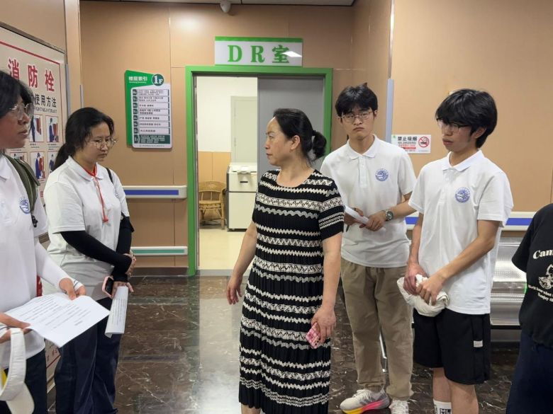 7月7日,实践团带着满腔热枕抵达绍庆街道,第一时间与社区负责人展开座谈。双方围绕当地居民健康需求、常见突发状况等议题深入交流,为后续精准开展活动奠定基础。随后,在指导老师喻梦雪的带领下,实践团走进绍庆医院开展实地调研。通过医院相关人员的讲解,同学们深入了解到了该医院的主要科室分类以及一些医疗设备的主治功能。医院负责人热情接待并全程陪同讲解,从急诊急救中心的绿色通道流程,到内科、外科等重点科室的诊疗特色;从全自动生化分析仪的精准检测原理,到心肺复苏模拟训练系统的操作规范,同学们认真记录每一项信息,不时就基层医疗设备的实际应用场景提问。当看到医院专门为老年患者设置的无障碍诊疗通道,以及针对苗族儿童的特色预防接种服务时,实践团成员深刻感受到基层医疗机构在守护民生健康中的温情担当。