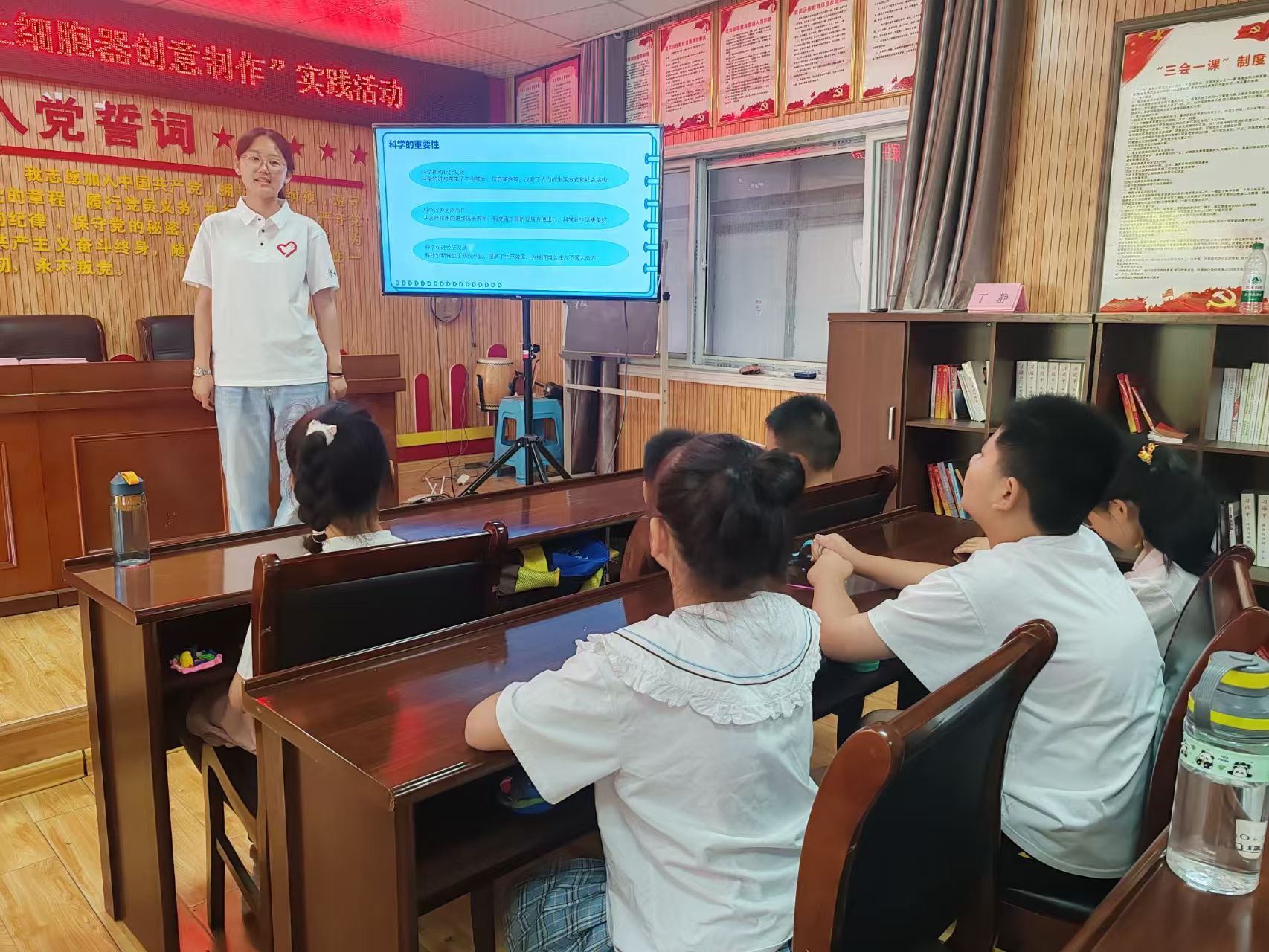 为激发青少年对科学的探索热情,志愿者们组织了科学宣传活动。志愿者先以专业又生动的讲解,借助PPT为孩子剖析科学观察方法,把晦涩的知识变得浅显易懂。随后,志愿者播放了一段趣味自然科普视频,展示奇妙生物与生态,将孩子们带入广袤科学世界。为孩子们搭建起科学认知的桥梁,点燃对科学探索的兴趣之火。
