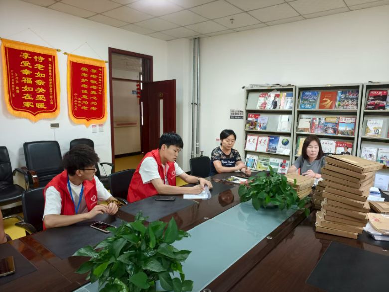 (图为“薪火暖耆程,赤诚护晚晴”团队队长与队员同院长召开相关会议 由三下乡团队成员倪子乾摄)
