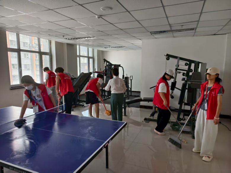 (图为“薪火暖耆程,赤诚护晚晴”团队打扫和静县养老院活动室 由三下乡团队队长王恩康摄)