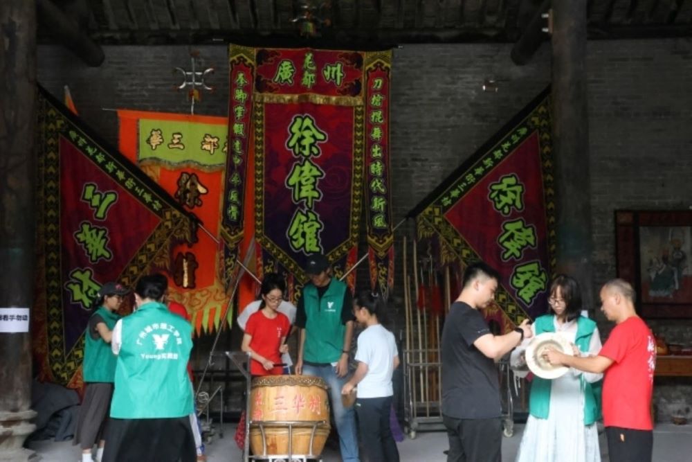 “武馆是上世纪四十年代创建的”,谈及徐伟馆创建历程,徐新晃师傅回忆道,“创始人徐伟师傅功夫了得,当时声名远播,在广州是响当当的人物。”从徐新晃师傅的介绍中,Young实践团成员了解到,出于对武术和醒狮的热爱,徐伟师傅在三华村创办了徐伟馆,非遗传承事业由此肇基。鼎盛时期,在各地广开武馆,仅花都区就创办了十几间武馆,培育了众多学员。其学员们秉承武馆“德武兼备”的精神薪火相传,大力弘扬醒狮文化,将武馆开到了香港、澳门等地,在广州、南海、佛山等地频繁演出,创造出诸多成就,颇具影响力。