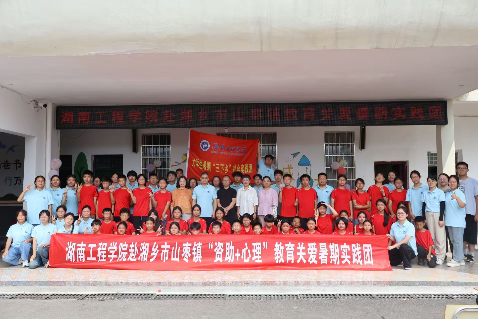 2025年7月8日——7月13日,湖南工程学院赴湘乡市山枣镇“资助+心理”教育关爱服务团在山枣中学开展了一系列丰富多彩的教育关爱活动,通过心理团辅、科学实验、励志宣讲、趣味手工、主题宣讲及互动实践等形式,为当地中小学生带来了一场知识与欢乐并存的成长盛宴。