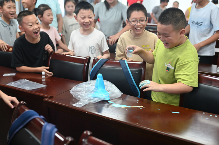 为践行“五育并举”的实践目标,2025年7月14日,湖北大学外国语学院青年志愿者行动指导中心赴马武支教团队队员许语倩为马武镇的小朋友们带来了一堂妙趣横生的实验课——“大象牙膏”实验。这堂以智育为导向的课程不仅传授科学知识,更着力培养孩子们的创新思维与问题解决能力,希望在他们心中播下对物理、化学的兴趣种子。