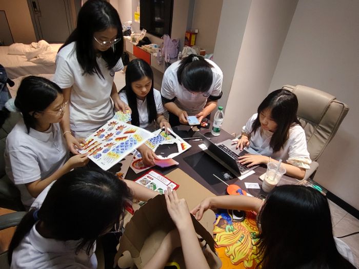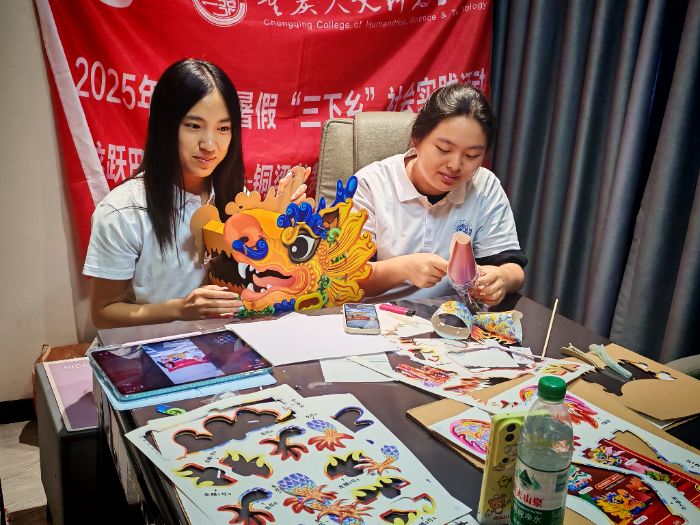 (图为实践团成员在制作龙舞周边,陈龙佳 供图)