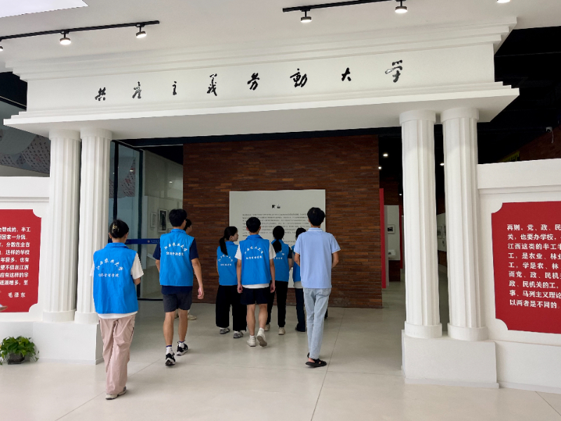 探访尾声,实践队员们齐聚博物馆门前的共产主义劳动大学复刻大门下合影留念。大门两侧,毛泽东同志当年的题词依然醒目,仿佛仍在诉说着那段激情燃烧的岁月。这场穿越时空的寻根之旅,不仅为江西农业大学百廿庆典增添了厚重的历史注脚,更让青年学子们深刻领悟:传承共大精神,绝非简单地回溯过往,而是要像当年的共大人一样,在新时代的沃土上,持续发扬其精髓,奋力书写属于农大人的崭新答卷。