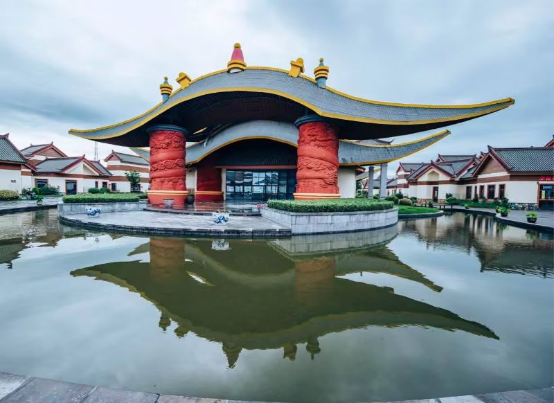 位于淮安市的实践团成员们参观了当地的尧想国文化旅游区。该景区以二十四节气广场为核心载体,通过建筑群展现农耕文明起源。进入景区,映入眼帘的是高大威猛的尧帝像,尧帝像高达数十米,屹立在广场中央,目光深邃的凝视着远方,让人心生敬畏。沿着石板路前行,来到尧文化展示馆,展示馆内通过丰富的文物,图片,文字以及多媒体展示手段介绍了尧帝的生平事迹。讲解员详细讲述了尧帝“禅让”“治水”“制历”等传说故事,以及尧文化中“仁爱”“勤政”“民本”的核心精神,让参与者们对这位上古贤君的丰功伟绩有了更清晰的认识。除了静态的参观,景区丰富的互动体验项目更是让大家兴致盎然。在尧文化体验区,参与者们尝试了古法酿酒、陶器制作等传统技艺,亲手感受上古时期的生产生活方式。在复原的尧帝宫殿场景中,队员们体验了一场别开生面的“模拟祭典”,切身感受古代礼仪文化的庄重与神圣。此次尧想国文化旅游区参观活动,不仅让队员们近距离触摸到了远古文明的脉搏,更在轻松愉悦的氛围中深化了对尧文化的理解,让大家在潜移默化中传承和弘扬了中华优秀传统文化。