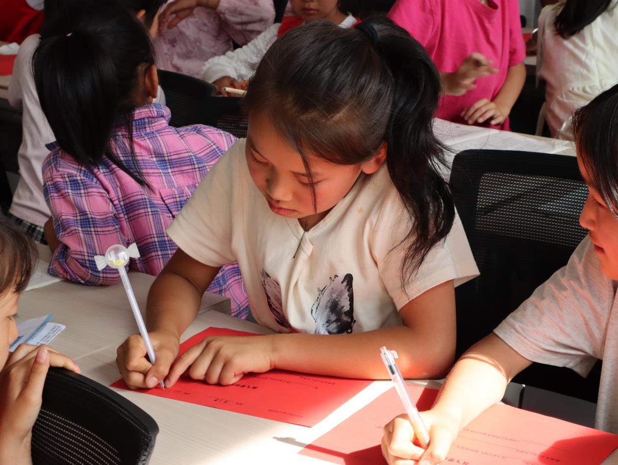 下午3时,活动在《国家》的合唱声中继续。志愿者们悉心教导孩子们学习歌曲的手势舞,从“一玉口中国”的手势比划,到“一心装满国,一手撑起家”的深情演绎,孩子们用肢体语言表达对祖国的热爱。