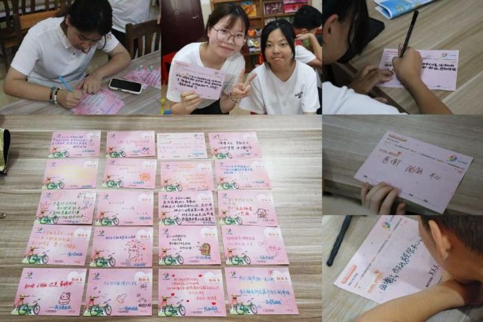 志愿者以吉他弹唱瞬间点燃现场气氛,欢快的旋律让孩子们逐渐放下拘谨。随后,全体共唱《学习雷锋好榜样》,激昂的歌声中传递出“奉献、友爱、互助、进步”的志愿精神。团队设计“知心姐姐暖心卡”环节:每名志愿者手写祝福语或成长寄语,并引导孩子们用绘画或文字回信。一张张彩色卡片承载着双向奔赴的温情。