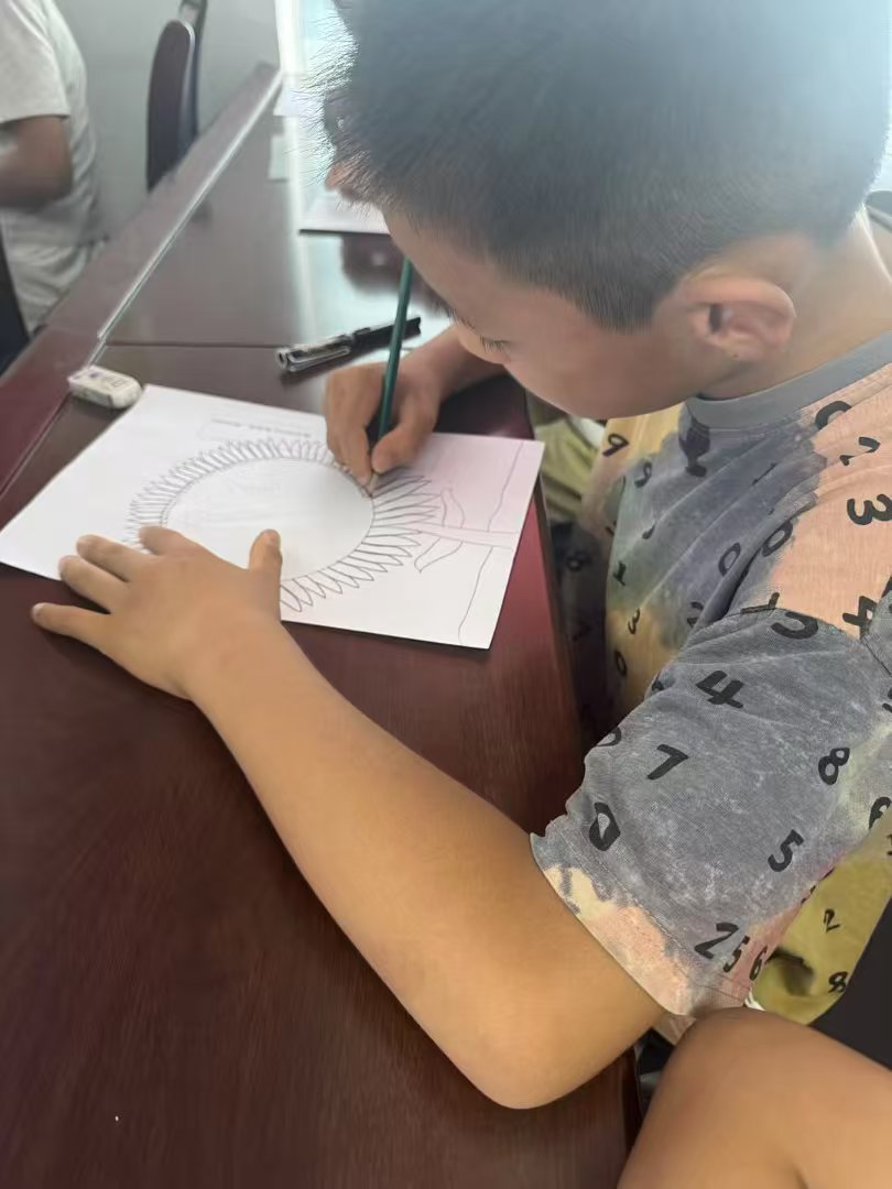 美术课伊始,支教老师并未急于灌输绘画技巧,而是以一个开放性的主题 “用圆圈画不同的画” 开启课堂。这一简单却充满无限可能的命题,瞬间点燃了孩子们的创作热情。没有固定的 “标准答案”,没有所谓的 “画得像不像”,孩子们只需循着内心的声音,在画纸上的圆圈里肆意挥洒。