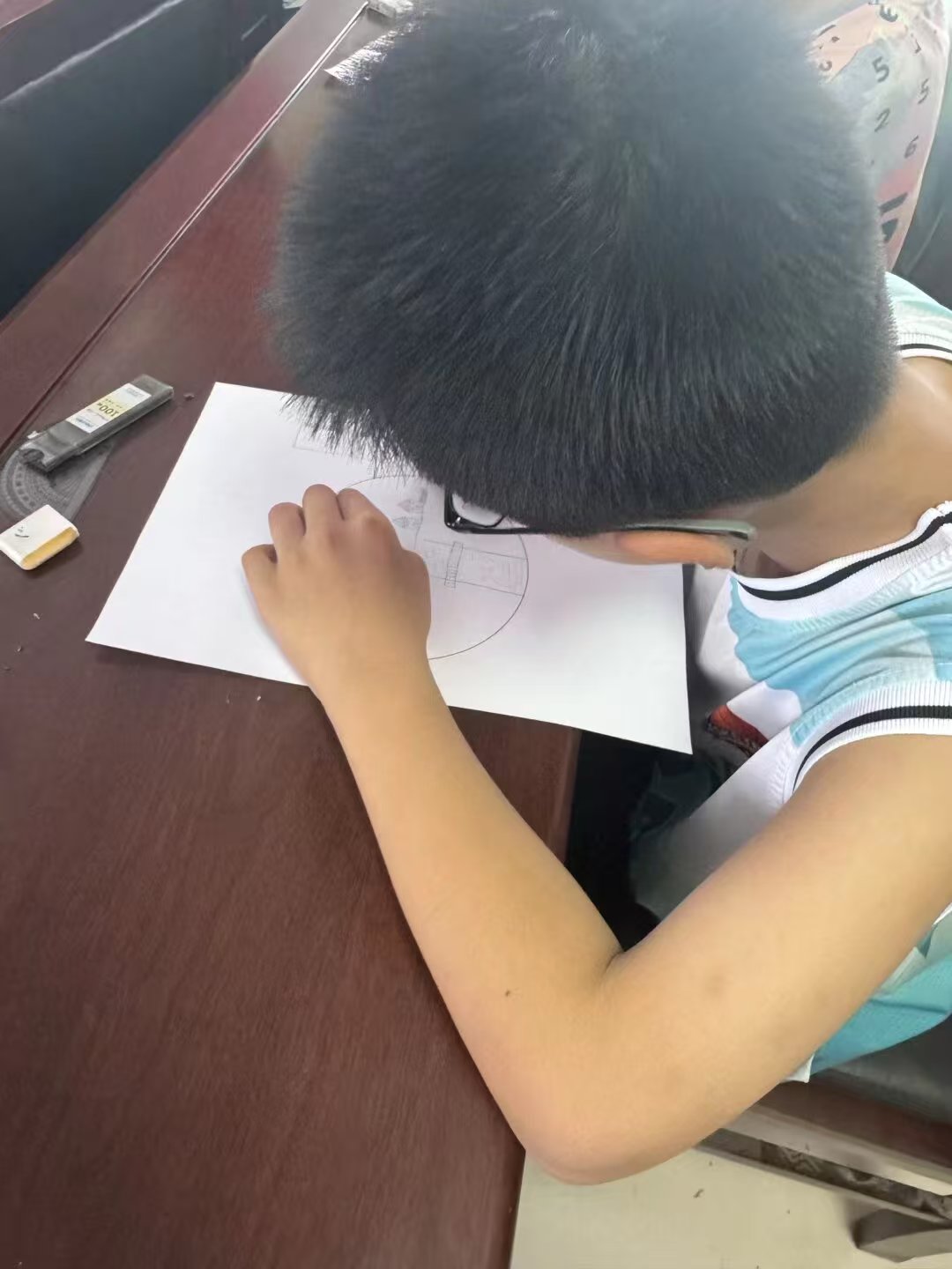 课堂上,孩子们的专注模样令人动容。一个戴眼镜的小男孩,身体前倾,几乎要将脸埋进画纸里,手中的铅笔在圆圈内细细勾勒。他时而蹙眉思考,时而嘴角微扬,沉浸在自己的创作世界中。在他的画笔下,圆圈变成了憨态可掬的卡通形象,圆圆的脑袋上,眼睛、嘴巴被赋予了独特的神态,仿佛在诉说着一个不为人知的小故事。