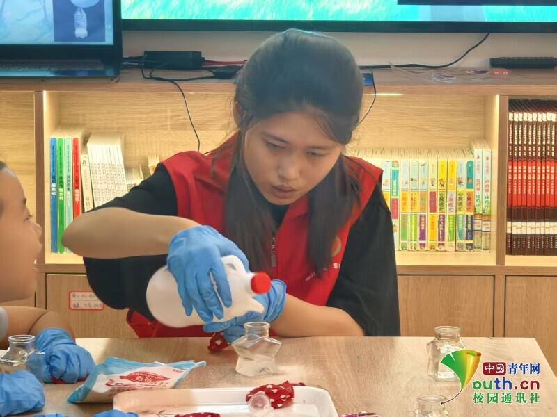 志愿者以气体知识科普为切入点,用通俗易懂的语言为小朋友们介绍了气体的定义与组成,系统讲解了二氧化碳的来源、特性与产生途径,阐释二氧化碳的用途与危害,重点强调过量排放导致的环境危害,引导小朋友们理解"碳"与生态的密切关联。志愿者准备了小苏打、醋酸等实验材料,现场演示二氧化碳的产生与收集过程,并着重讲解了实验的注意事项,带领小朋友们共同探讨其中的实验原理。(通讯员 刘梦冉 李新志)