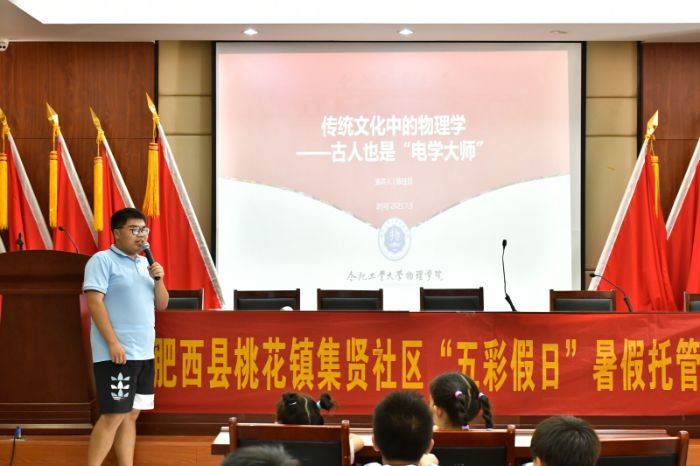 7月9日,合肥工业大学物理学院“逐梦集光”两支志愿服务队走进集贤社区,联合开展了一场以“电的奥秘与传承”为主题的电学科普活动。活动通过生动讲解、趣味实验和互动体验,带领社区青少年探索电学世界的奇妙,感受物理学的魅力,吸引了众多孩子和家长的热情参与。