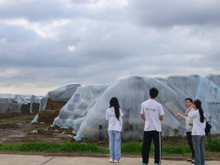 图为史一功书记带领团队成员讲解介绍秸秆的利用。叶语茹 供图