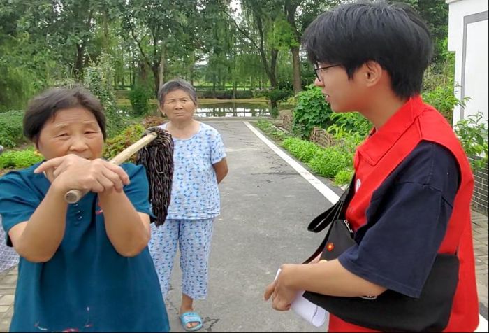 图为团队成员采访当地种植户李桂兰。王芳 供图