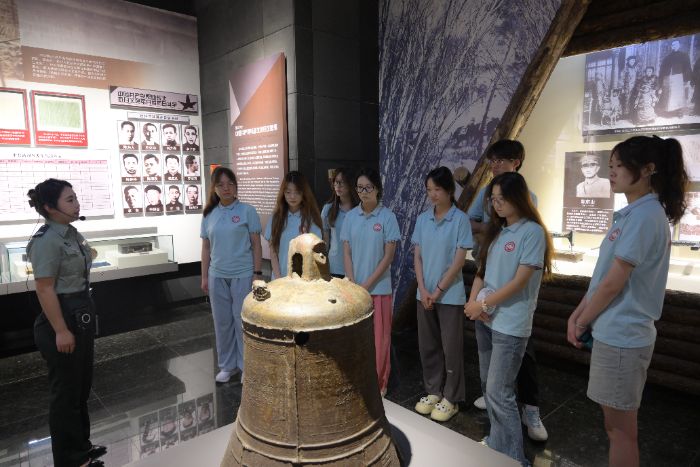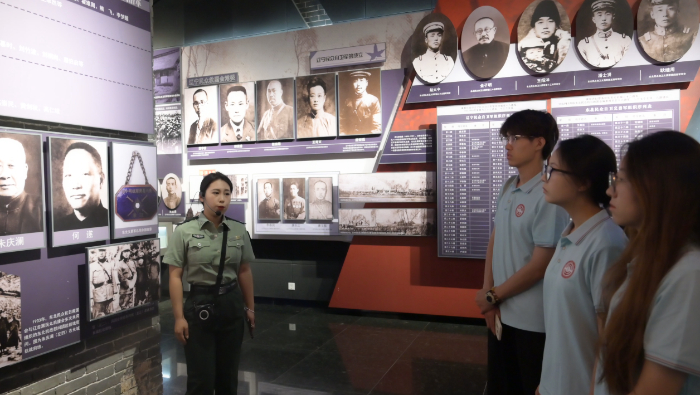 图为夏乡萤火乡村振兴实践团参观义勇军纪念馆,康博森摄