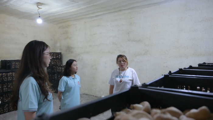 图为夏乡萤火乡村振兴实践团参观牛毛坞香菇种植园冷库,康博森摄