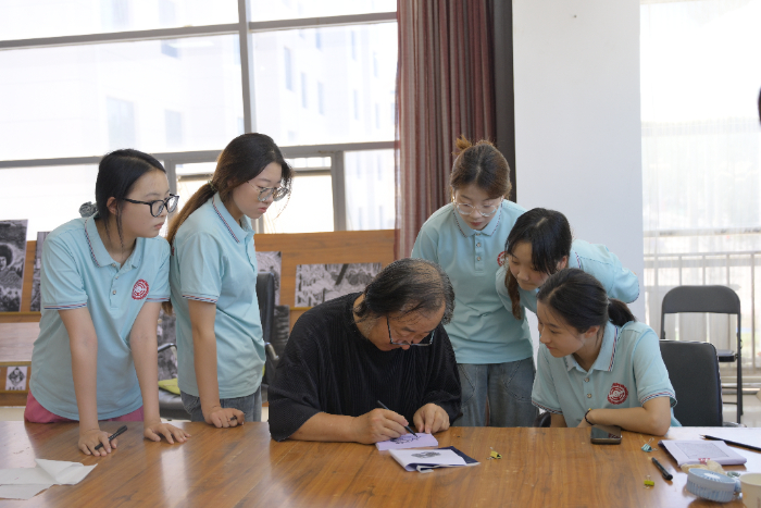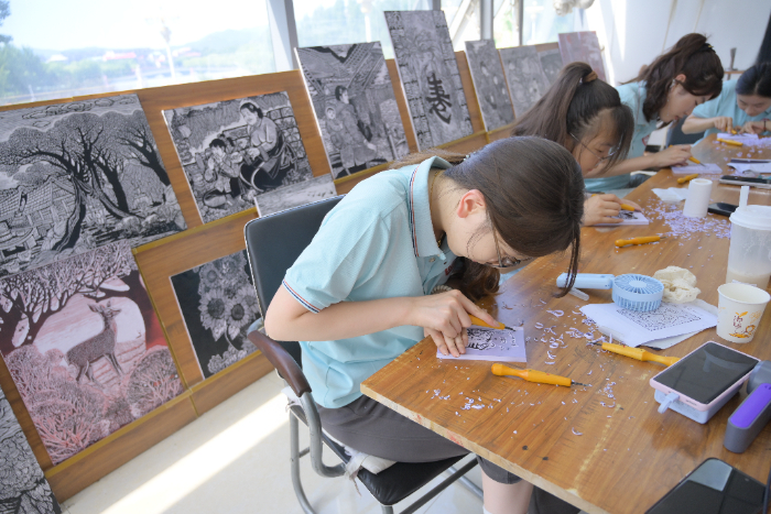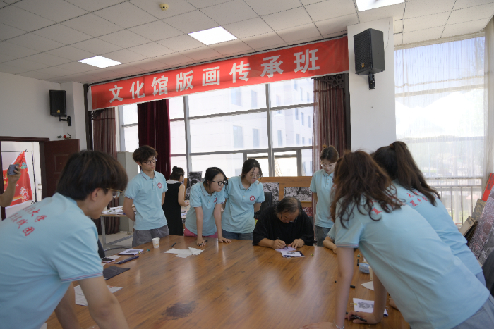 图为夏乡萤火乡村振兴实践团学习非遗“版画”,康博森摄