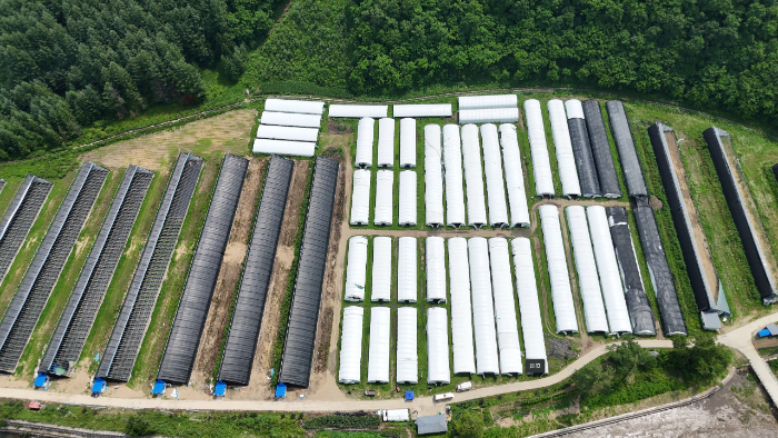 图为夏乡萤火乡村振兴实践团参观牛毛坞香菇种植园航拍,康博森摄