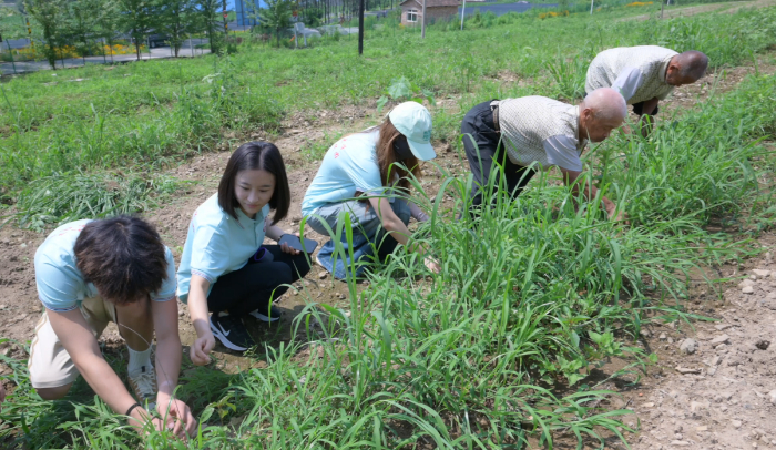 图为夏乡萤火乡村振兴实践团帮助敬老院除草,康博森摄