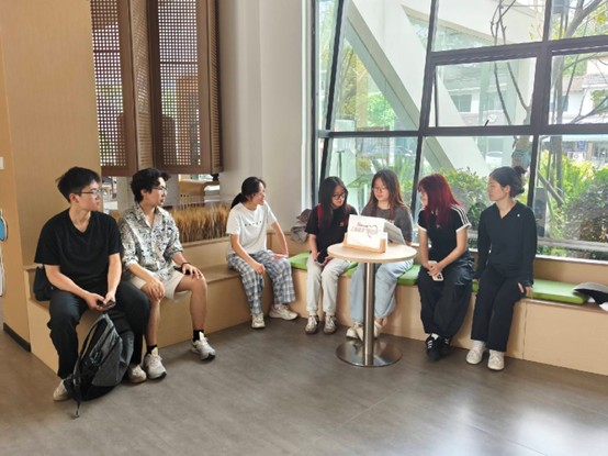 图二:同学们在图书角讨论学习,激烈讨论,碰撞思维的火花