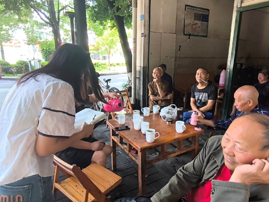 同学们还与当地的退休党员干部展开对话。老党员们分享的为人民服务经验和感人故事,让同学们深受触动,进一步坚定了我们服务基层、奉献社会的决心。
