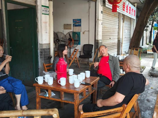 图五:小倪同学认真听着李叔回忆当年服务基层的经历
