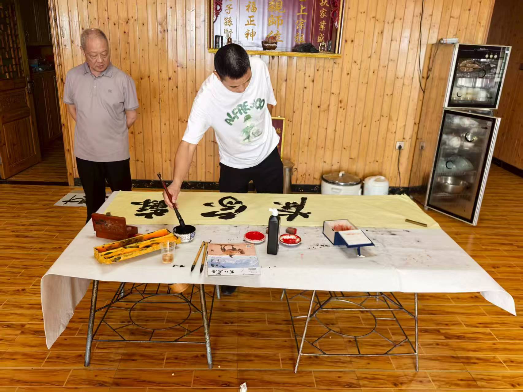 在完成与村委的交流后,有幸见到了书法协会的几位老师正在挥毫泼墨。老师们笔下的字刚劲有力,蕴含着深厚的文化底蕴。