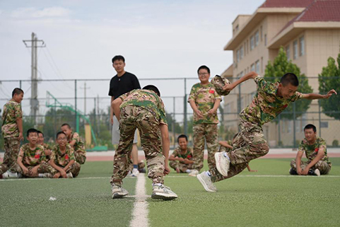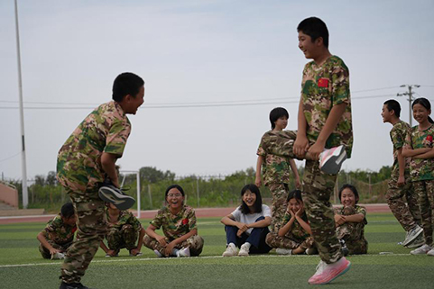 军训环节更是亮点纷呈,除了基础的队列训练,志愿者们精心设计了抢帽子、斗鸡比赛等趣味活动。抢帽子游戏中,孩子们围成圆圈,在志愿者的指令下灵活跑动,考验反应能力的同时,也让大家在追逐中释放活力;斗鸡比赛里,孩子们单脚站立,用膝盖相互 “攻击”,现场欢呼声、加油声此起彼伏。这些活动不仅锻炼了孩子们的身体素质,还培养了他们的团队协作精神和竞争意识。