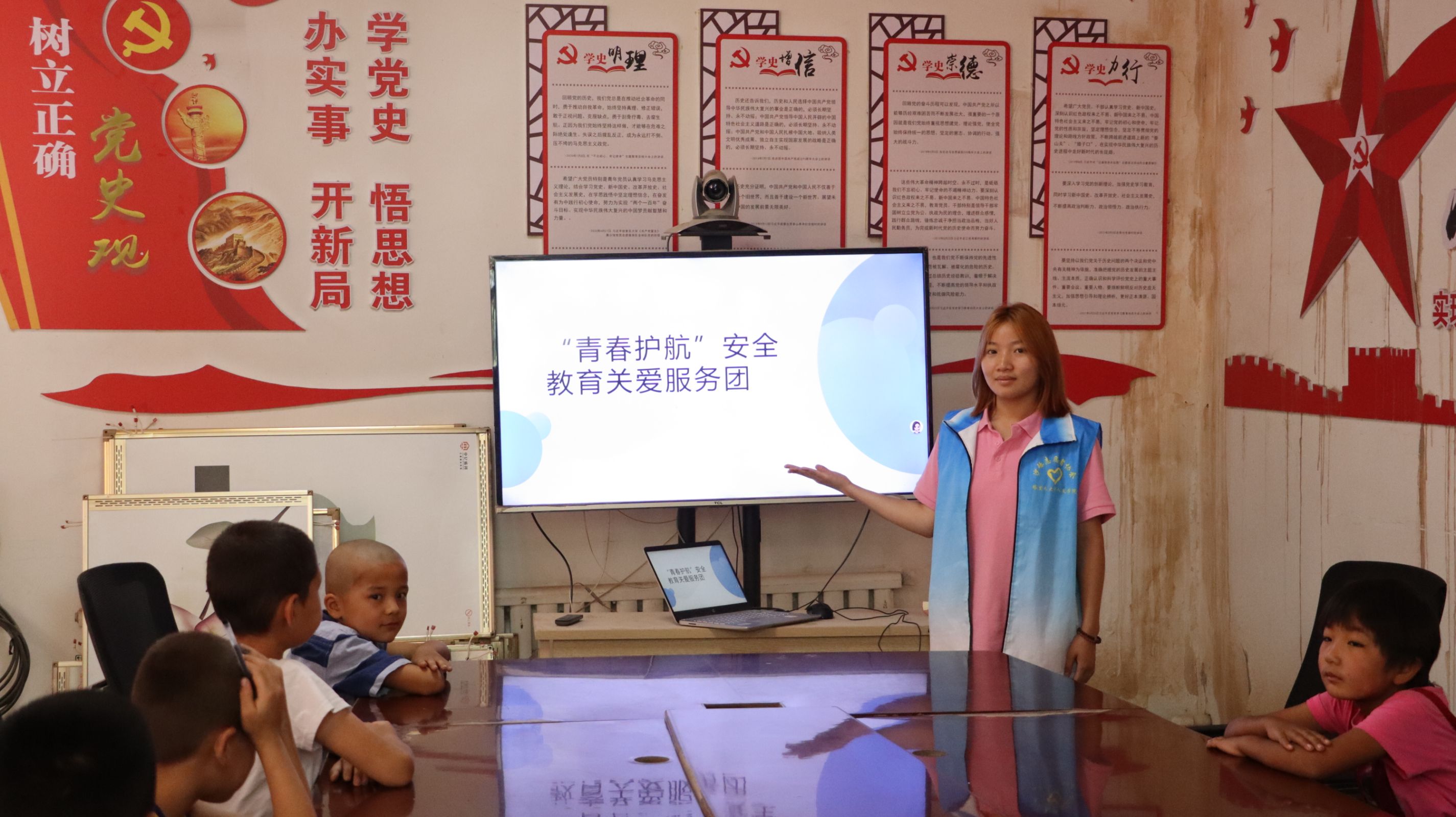 (图为服务团成员向青少年开展宣讲 邓佳欣摄)