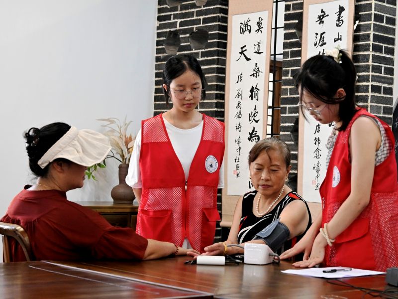 图为队友们为社区居民测量血压。 通讯员 赁思雨 摄