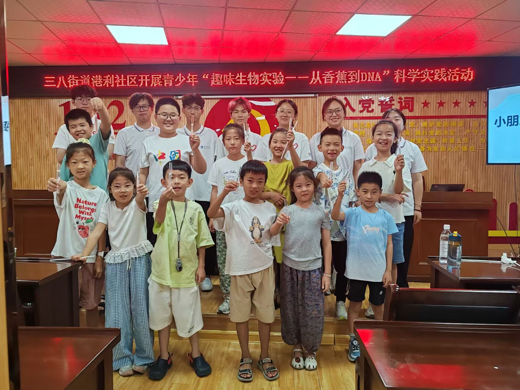 为深入学习贯彻习近平生态文明思想,落实绿色发展理念,增强公众环保意识与科学素养。近日,巢湖学院“我是小小实验郎”暑期三下乡团队奔赴宿州市埇桥区三八街道港利社区开展了香蕉DNA提取和垃圾分类实践活动。团队成员凭借专业知识,以生动有趣的实验与实践,为孩子们带来了一场别开生面的科普体验,在孩子们心中种下科学与环保的种子,助力乡村文化与生态建设。
