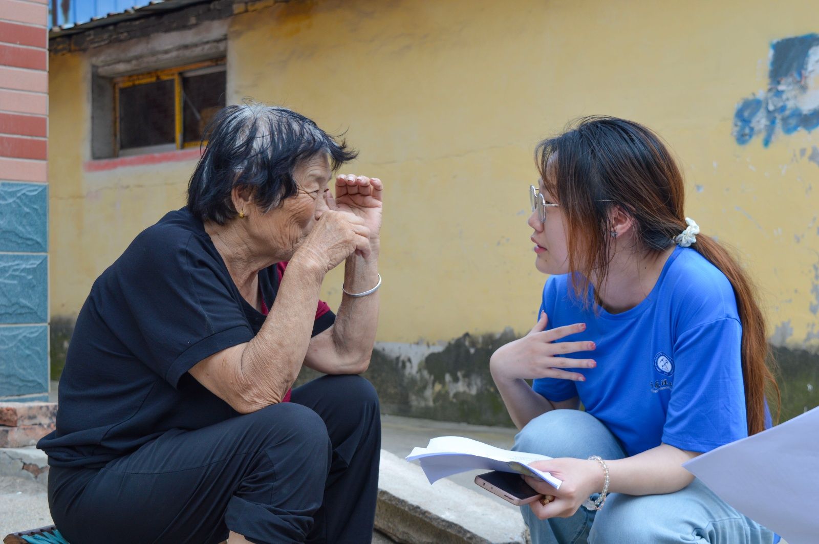 图为实践团成员实地访谈镇中老人田泽坤供图
