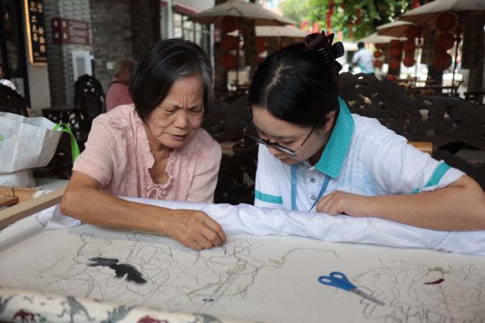 7月12日,突击队成员走进碧江绣编手艺工作坊,亲身体验竹编与广绣的学习实践。在非遗传承人的悉心教导下,突击队成员们亲身体会非遗传统技艺,探寻其发展与传承的脉络,真切体会到非遗技艺背后蕴含的深厚匠心与无穷智慧,更清晰地探寻到非遗文化的发展与传承的脉络。