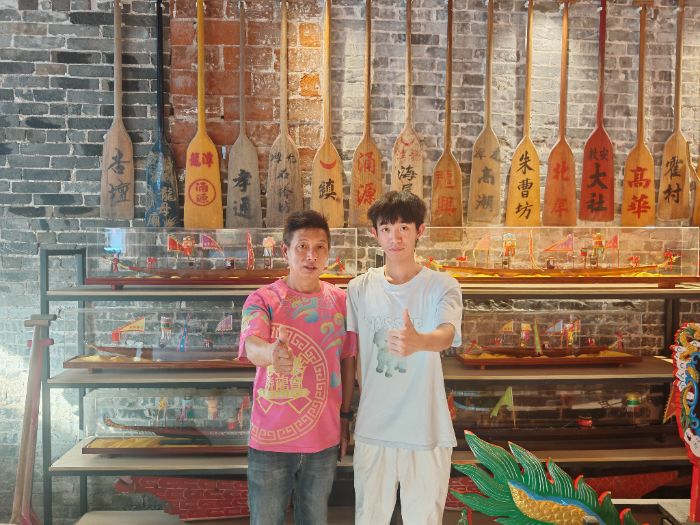 7月9日,寻韵绘旅突击队成员与广东工业大学突击队携手,一同对接龙舟传承人,深入了解相关项目,通过真诚的交流沟通,队员们体会到龙舟所承载的不仅是“同舟共济、团结拼搏”的精神,更是“大胆探索、勇于创新”的品格,是粤港澳大湾区城市之间同根同源,一脉相承的人文基因。在顺德,龙舟是一种流淌千年的精气神,是一个永远烙印在人们心底的文化图腾,始终激发着人们蓬勃向上的力量。
