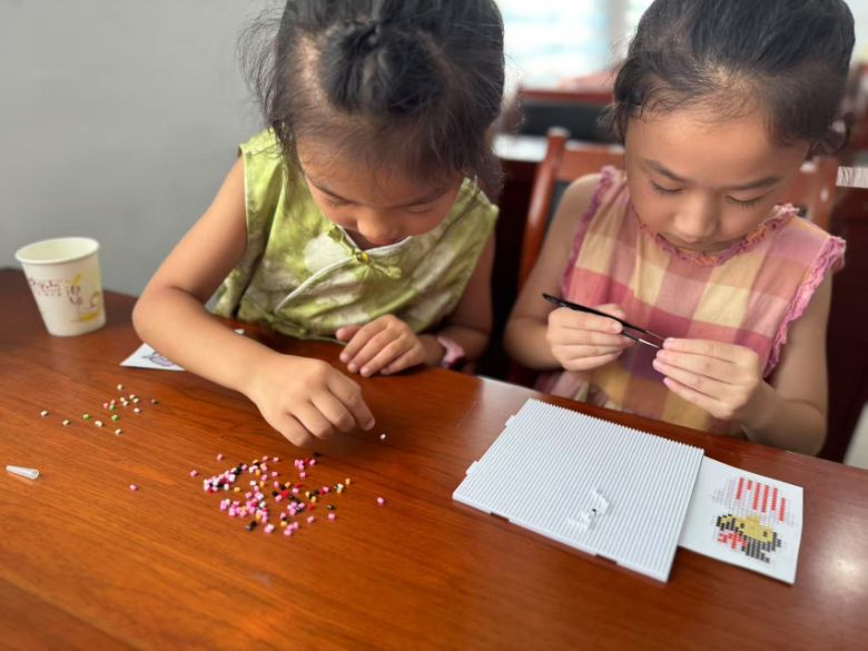 志愿者引导青少年自主创作拼豆作品,使他们在反复尝试中提升专注力与审美能力。在“匠心成果展”上,数件融合传统元素的拼豆作品集中亮相,孩子们通过作品展示,深化了对文化传承与创新的理解。