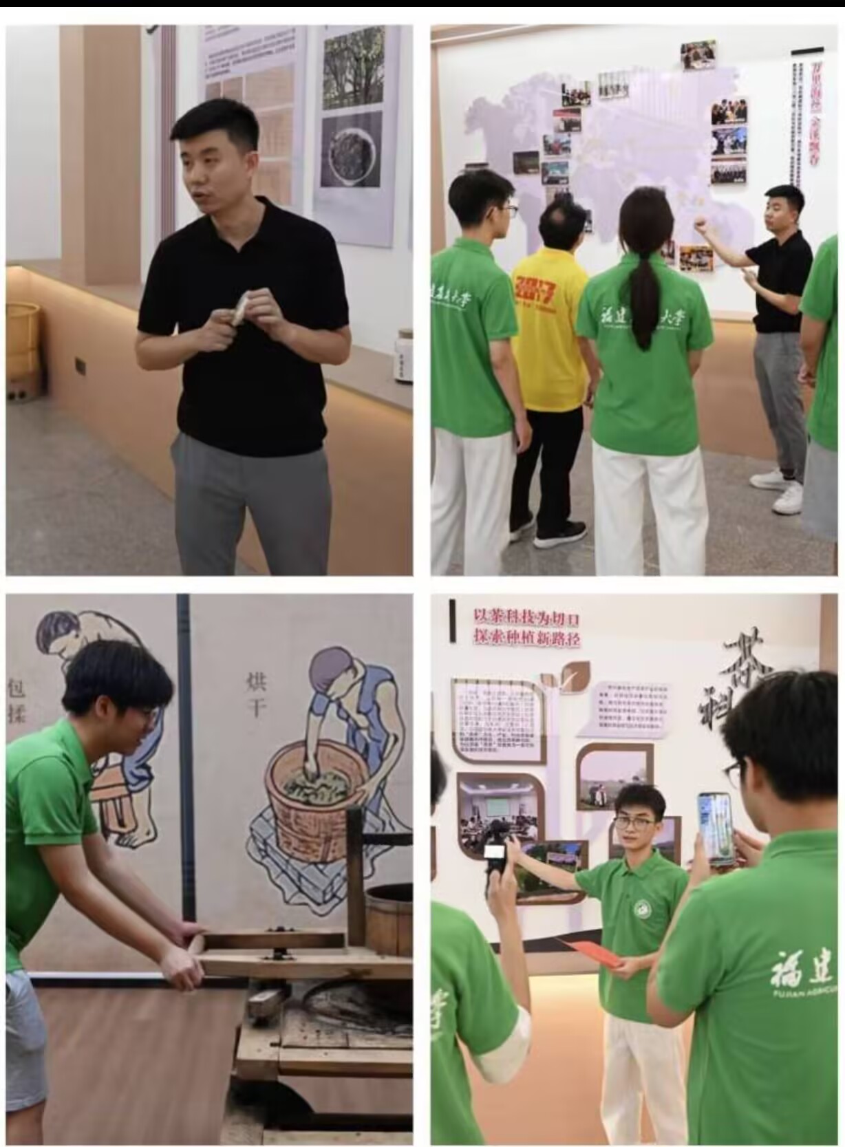 之后,实践队前往福建金溪茶叶有限公司。公司负责人带领队员们参观,并详细介绍了当地的茶文化、茶科技及茶产业发展情况,分享了公司把脉茶叶消费群体年轻化趋势、开拓茶饮领域新赛道的成功案例。随后,实践队员汪锦彬通过抖音平台开展直播,结合当地好山好水好生态,宣传这里的茶叶。