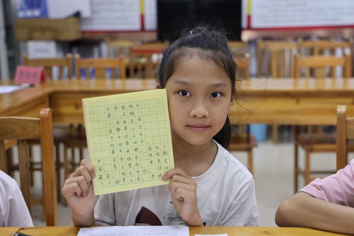 夏令营以《三字经》《唐诗三百首》为舟楫,精心设计“三维”教学法:拼音标注扫清诵读障碍,志愿者逐字正音,让“远上寒山石径斜”不再拗口;节奏训练活化韵律感知,孩子们拍手踏歌,在《春晓》的平仄中感受文字呼吸;舞台表演点燃表达自信,分组编排的《静夜思》朗诵,辅以手势与走位,稚嫩童声瞬间拥有了穿透人心的力量。课堂化身小型剧场,诵读从课本走向生活。