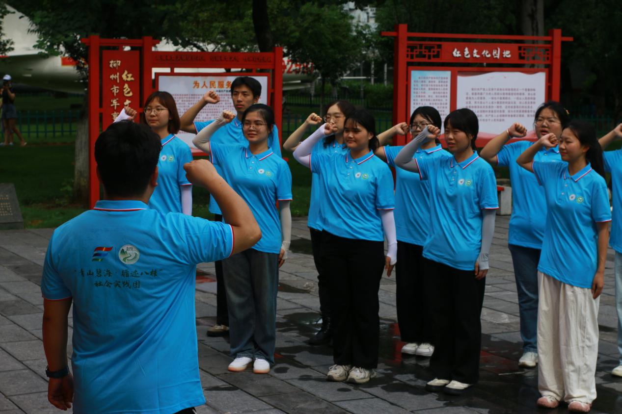 图为实践团成员重温入党誓词(吴明燕通讯员摄)