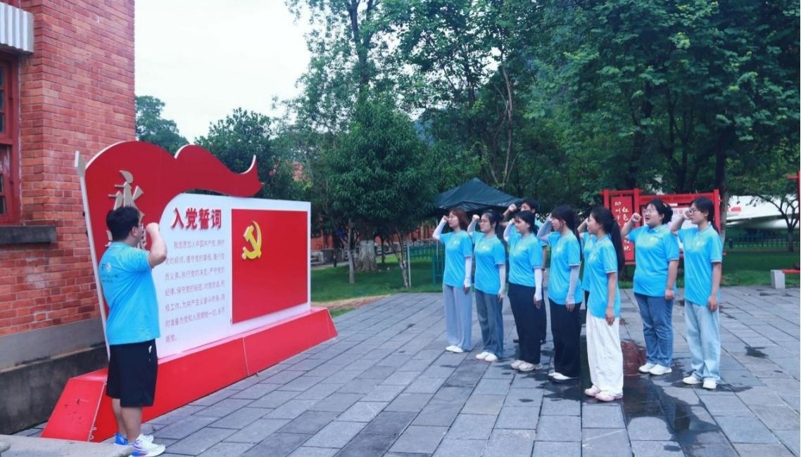 在园内,带队老师带领在场的党员学子重温入党誓词,庄严的宣誓声回荡在博物园内,让大家更加坚定了为党和人民事业奋斗的信念。