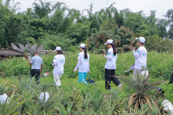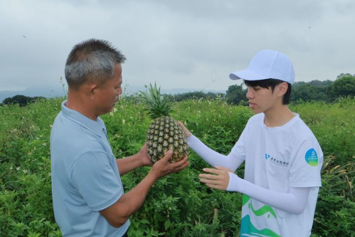 2025年7月11日广东科技学院惠艺启楼突击队为深入了解楼角村凤梨产业,开展了一场融合劳动实践、产业调研与文化创意活动。青年学子以双手触摸土地温度,用脚步丈量乡村振兴之路。