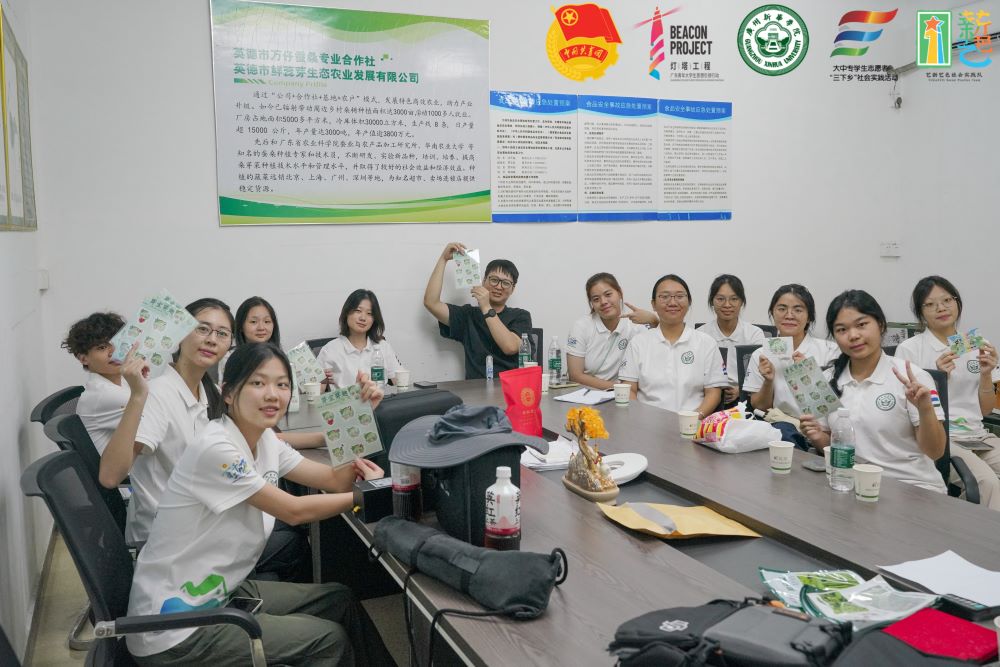图为广州新华学院艺新艺邑突击队讨论设计IP形象 李伊楠摄 在九龙镇的青山绿水间,新华学子用脚步丈量乡村振兴的产业图谱。当看到冷藏库里即将发往大城市的精致包装桑芽菜,再对比田间亲手采摘的嫩绿桑芽,队员们真切体会到农产品增值的全过程。从万仔的灵活助农到鲜蕊芽的科技兴农,小桑芽背后藏着联农带农的大智慧,这让突击队队员看到了产业升级的清晰路径,更深化了他们对乡村振兴战略实施路径的理解。